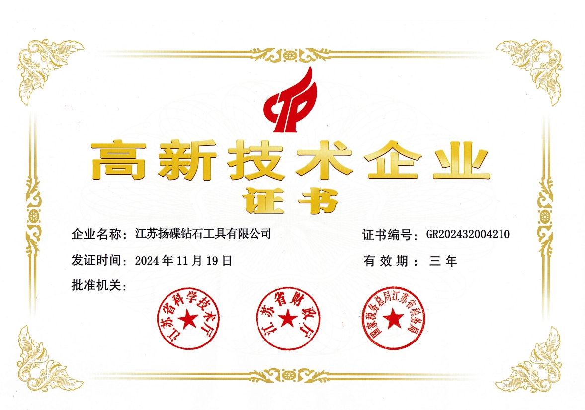 多年來,企業(yè)通過ISO9001國際質(zhì)量體系認(rèn)證,被中國中輕產(chǎn)品質(zhì)保中心授予“全國金剛石制造行業(yè)質(zhì)量放心滿意單位”,獲得江蘇省高新技術(shù)企業(yè)稱號(hào),榮獲江蘇省小巨人稱號(hào),變速箱PCD復(fù)合鉆鉸刀獲省高新技術(shù)產(chǎn)品等等。